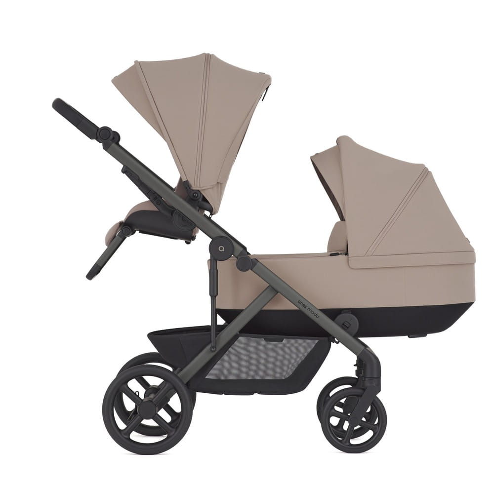 Anex słynie z dbałości o detale, a model Modu nie jest wyjątkiem. Obie budki (zarówno w gondoli, jak i spacerówce) wyposażone są w wodoodporne tkaniny z filtrem UV50+, chroniąc wrażliwą skórę Twoich dzieci przed słońcem, wiatrem i deszczem. Zaawansowany system wentylacji dba o cyrkulację powietrza w upalne dni, a regulowane oparcia i podnóżki w części spacerowej gwarantują wygodną pozycję dla starszego dziecka, nawet podczas drzemki.